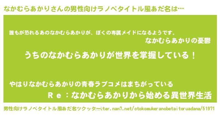 | ヘコむあだ名 | 『なかむらあかり(遠い目)』『なかにー』 |