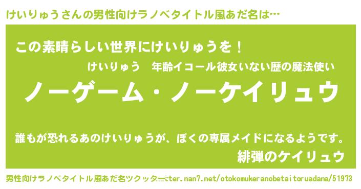 | 女子向けラノベタイトル風あだ名 | 『けいりゅう恋絵巻』 |