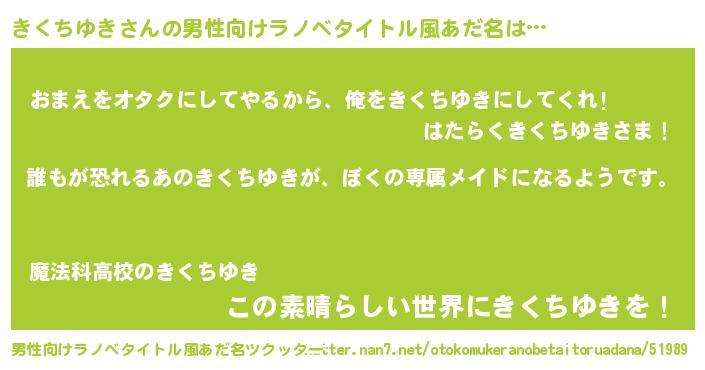| ヘコむあだ名 | 『きくちゆき(震え声)』『きくっふぃ~』 |