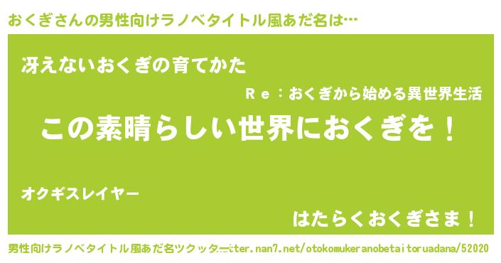 | 女子向けラノベタイトル風あだ名 | 『悪役おくぎに転生したようですが、知った事ではありません』 |