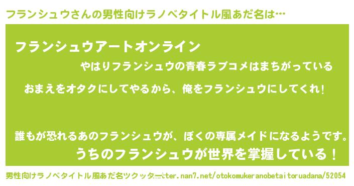 | 女子向けラノベタイトル風あだ名 | 『フランシュウ夫妻のなれそめ』 |