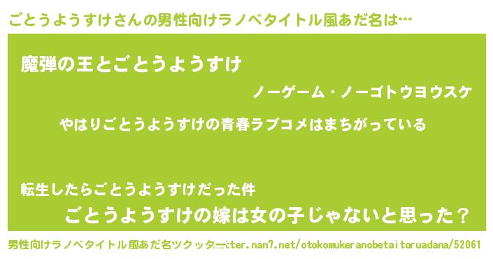 | 女子向けラノベタイトル風あだ名 | 『ごとうようすけの雑貨屋さん』 |