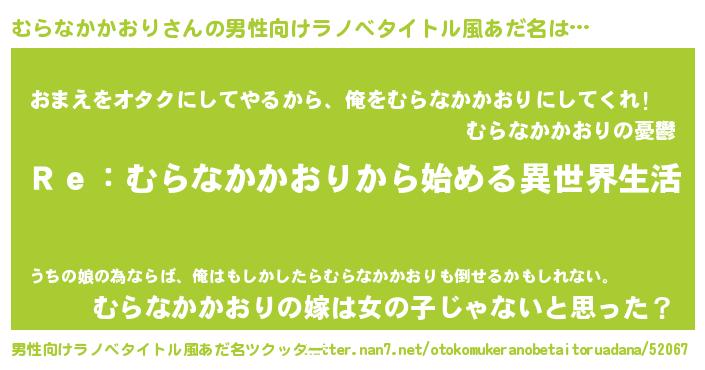 | 女子向けラノベタイトル風あだ名 | 『闇のむらなかかおり』 |