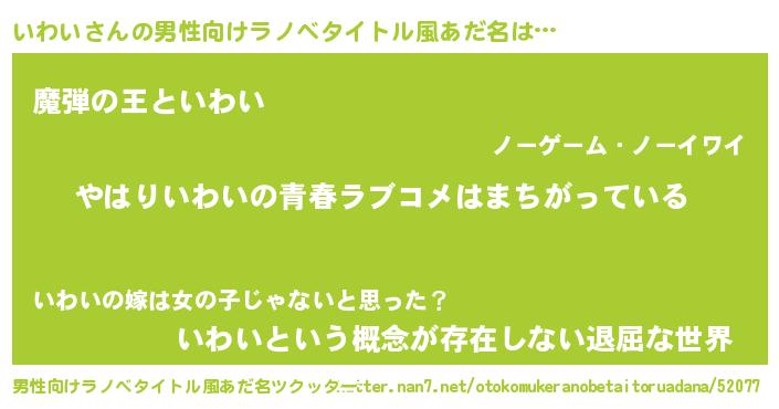| ファンタジー風あだ名 | 『エターナルイワイー』『ヴァルイワーナ』 |