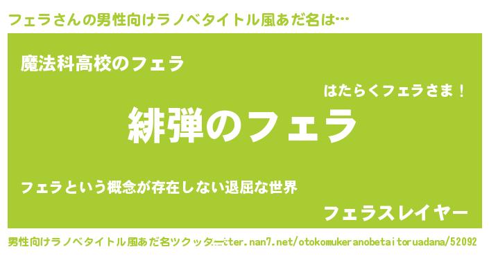 | 意味不明あだ名 | 『自称フェラ』『たけのこ科フェラ属』 |