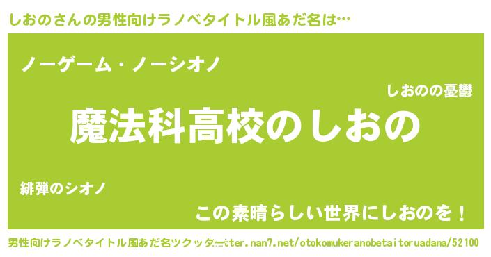| 意味不明あだ名 | 『自称しおの』『眠気覚ましガムしおの味』 |