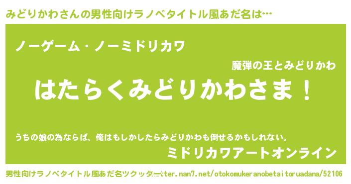 | 女子向けラノベタイトル風あだ名 | 『首の姫と首なしみどりかわ』 |