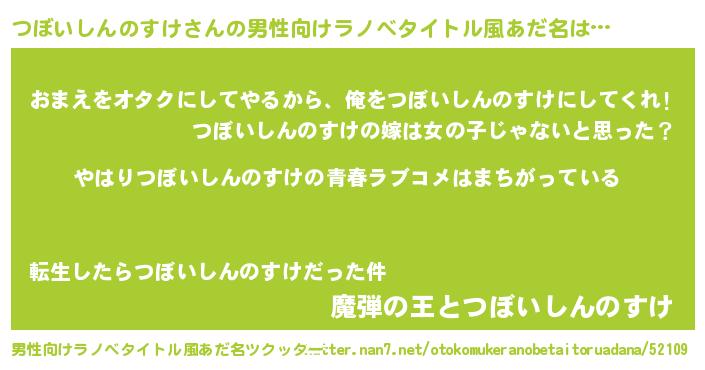 | ファンタジー風あだ名 | 『エターナルツボイシンノスケー』 |