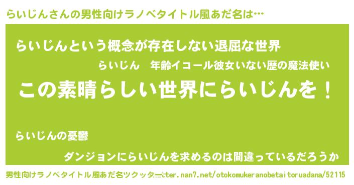 | 意味不明あだ名 | 『住所不定無職らいじん(41歳)』 |