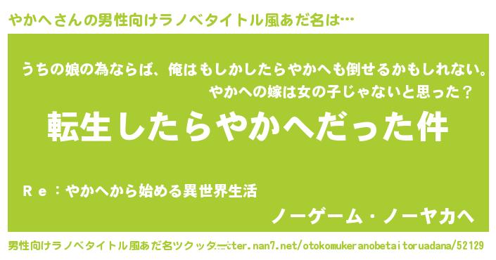 | 胡散臭い通販商品みたいなあだ名 | 『世界が平和になる高級そうな絵画…その名も「やかへ」』 |