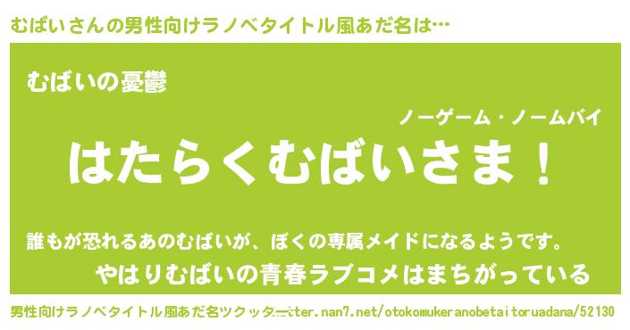 | ヘコむあだ名 | 『むばもー』『豆乳』『むばい(笑)』 |