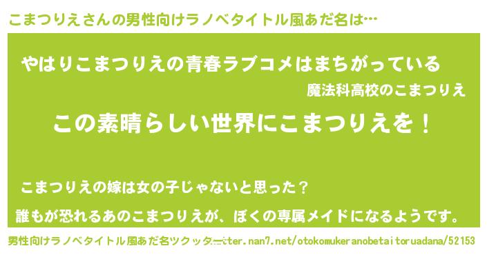 | 胡散臭い通販商品みたいなあだ名 | 『世界中を虜にした100年もののヴィンテージワイン…その名も「こまつりえ」』 |
