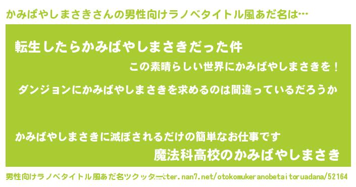 | 女子向けラノベタイトル風あだ名 | 『かみばやしまさきは平凡を望む』 |