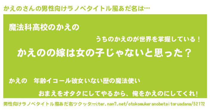| 意味不明あだ名 | 『とにかく怪しいかえの』『自称かえの』 |