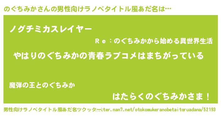 | 肩書あだ名 | 『のぐちみか総理大臣』『のぐちみか大佐』 |