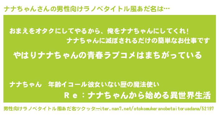 | ファンタジー風あだ名 | 『エターナルナナチャンー』『ゼナナトゥ』 |