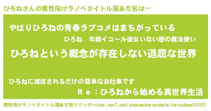| ファンタジー風あだ名 | 『ヒロディッシュ』『エターナルヒロネー』 |