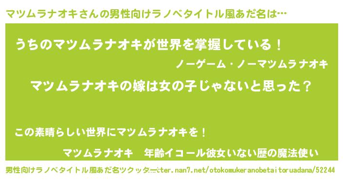 | 女子向けラノベタイトル風あだ名 | 『マツムラナオキ様がみてる』 |