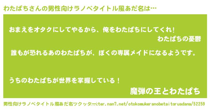 | 胡散臭い通販商品みたいなあだ名 | 『来世でも幸せになれる健康食品…その名も「わたぱち」』 |