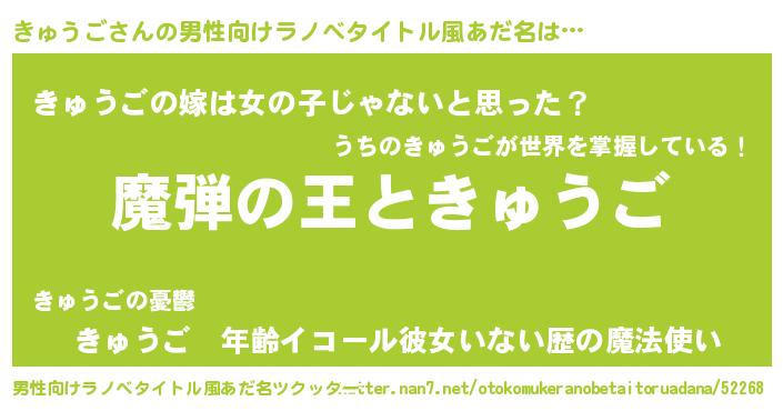 | 女子向けラノベタイトル風あだ名 | 『きゅうごが死なない童話 林檎のきゅうごの診療簿』 |