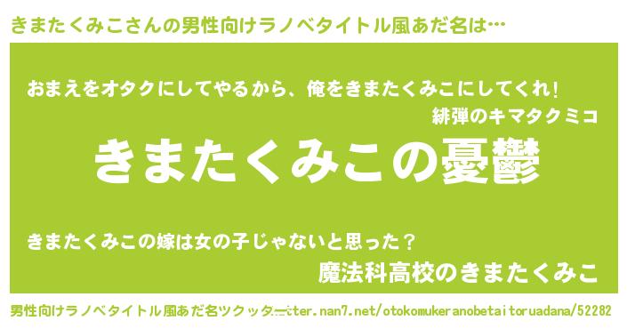 | 女子向けラノベタイトル風あだ名 | 『(仮)きまたくみこのやんごとなき事情』 |