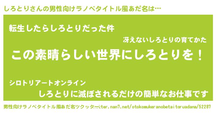 しろとりさんの男性向けラノベタイトル風あだ名をツクッター!