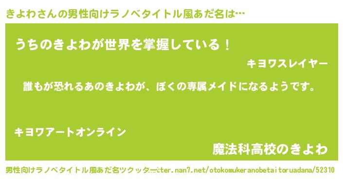 | 意味不明あだ名 | 『永久保存きよわ』『自称きよわ』 |