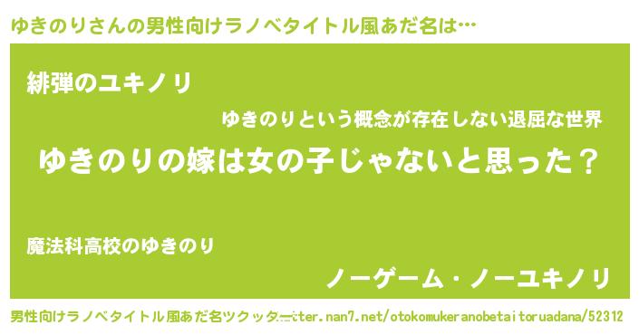 | ヘコむあだ名 | 『ゆき太郎』『ゆきのり(小並感)』 |