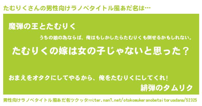 | 女子向けラノベタイトル風あだ名 | 『たむりく様がみてる』 |
