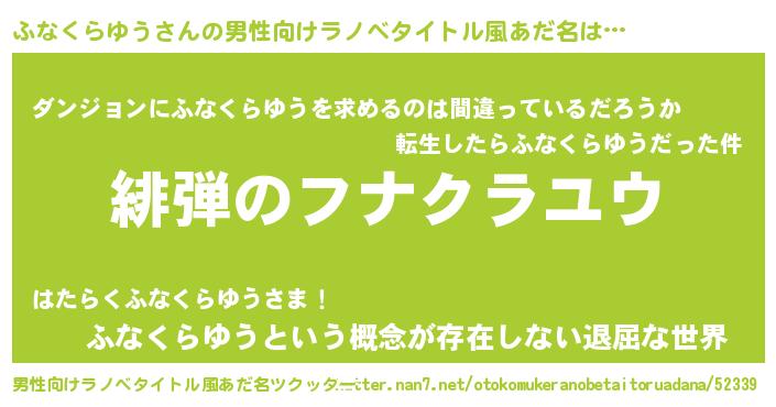 | 意味不明あだ名 | 『とにかく怪しいふなくらゆう』 |