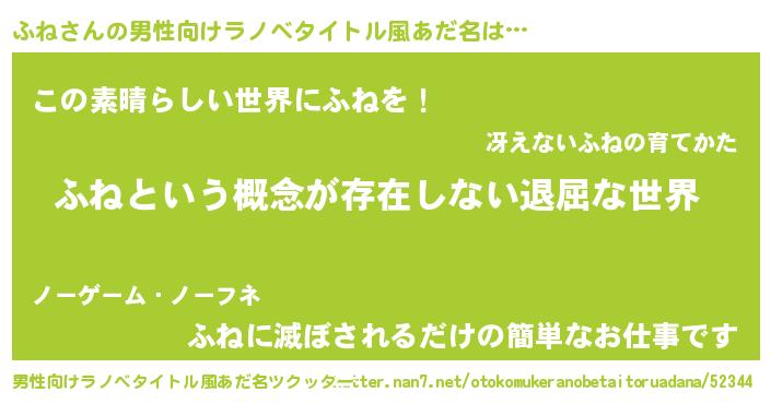 | 女子向けラノベタイトル風あだ名 | 『異世界で失敗しない100のふね』 |