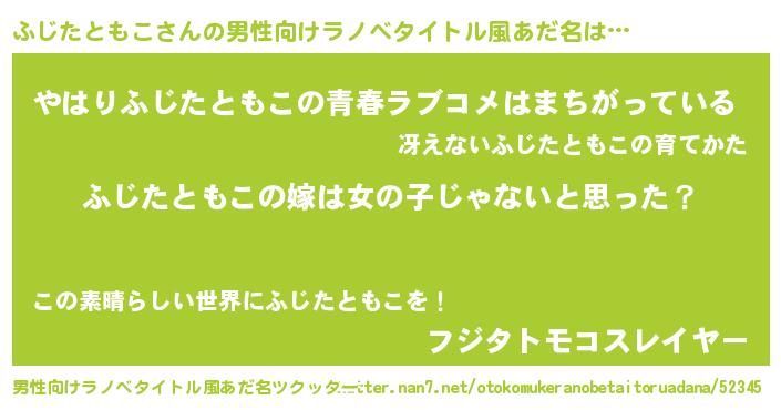 | 女子向けラノベタイトル風あだ名 | 『ふじたともこ様がみてる』 |