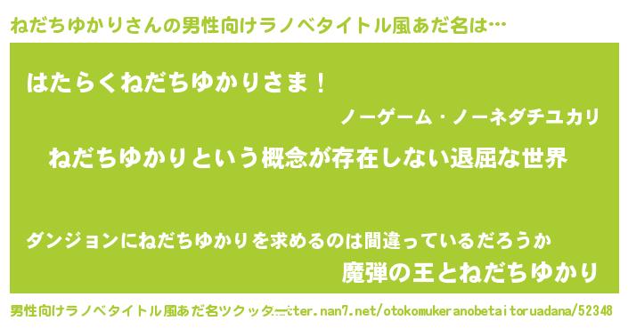 | ヒーロー風カッコイイあだ名 | 『ネオネダチユカリ』『仮面ネダダー』 |