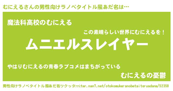 | 胡散臭い通販商品みたいなあだ名 | 『ガンによく効く高麗人参…その名も「むにえる」』 |
