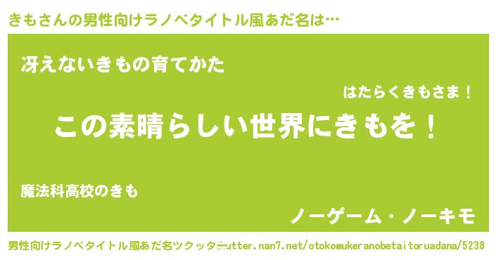 | 胡散臭い通販商品みたいなあだ名 | 『あなたにだけ特別に提供する100年もののヴィンテージワイン…その名も「きも」』 |
