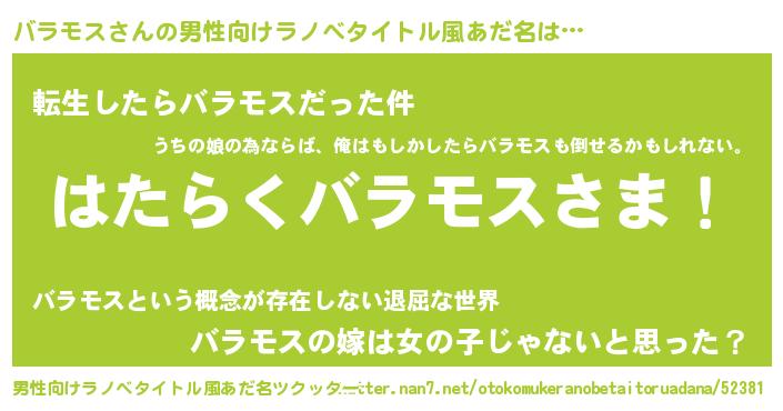 | 胡散臭い通販商品みたいなあだ名 | 『信頼と実績のサプリメント…その名も「バラモス」』 |