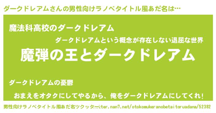 | 女子向けラノベタイトル風あだ名 | 『ダークドレアムが死なない童話 林檎のダークドレアムの診療簿』 |