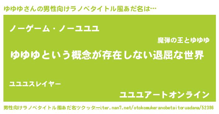 | 胡散臭い通販商品みたいなあだ名 | 『絶対に幸福をもたらす水素水…その名も「ゆゆゆ」』 |