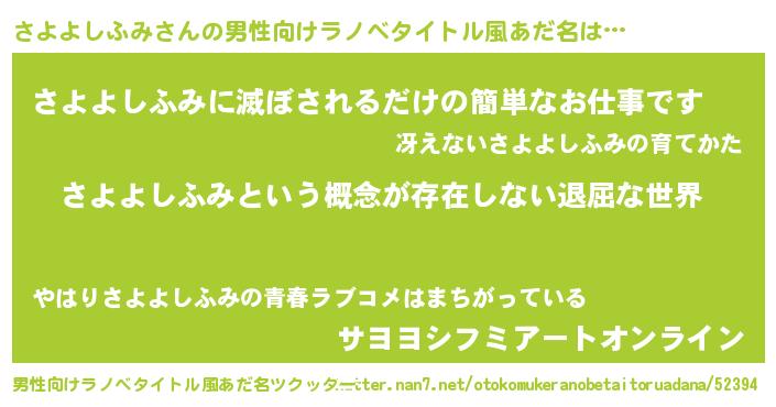 | 女子向けラノベタイトル風あだ名 | 『さよよしふみの契約王妃』 |