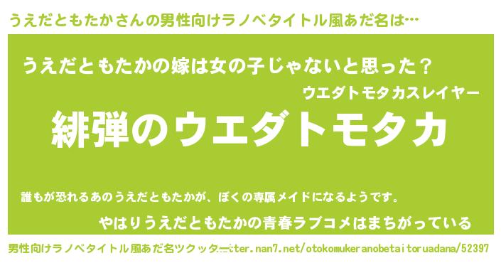 | 胡散臭い通販商品みたいなあだ名 | 『信頼と実績のペンダント…その名も「うえだともたか」』 |