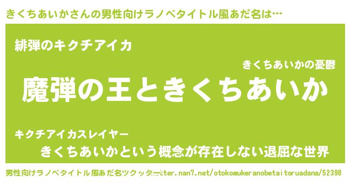 | 女子向けラノベタイトル風あだ名 | 『乙女ゲームの破滅フラグしかない悪役きくちあいかに転生してしまった…』 |