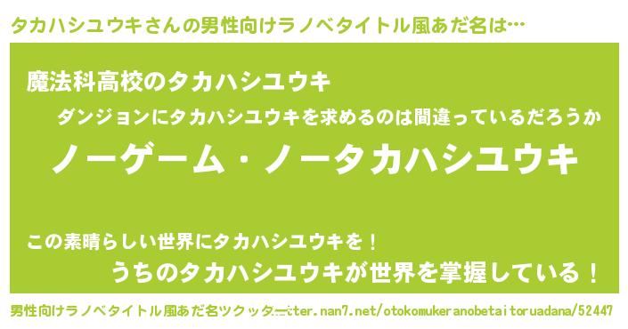 | 女子向けラノベタイトル風あだ名 | 『死神タカハシユウキの再婚』 |