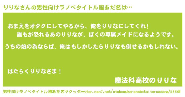 | 女子向けラノベタイトル風あだ名 | 『りりなの婚約者』『りりな恋絵巻』 |