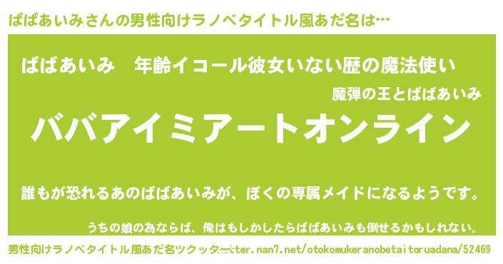 | 女子向けラノベタイトル風あだ名 | 『誰かこのばばあいみを説明してください! ~契約から始まるウェディング~』 |