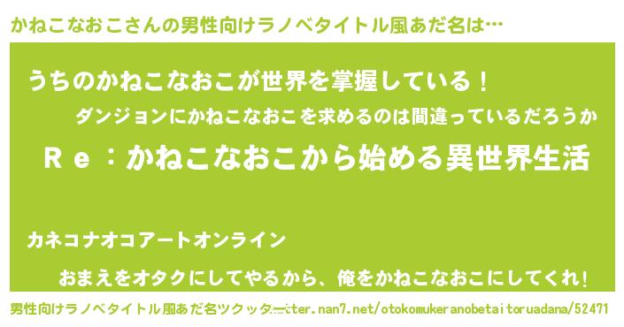 | 意味不明あだ名 | 『自称かねこなおこ』 |