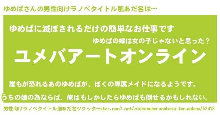 | 胡散臭い通販商品みたいなあだ名 | 『億万長者になれるブレスレット…その名も「ゆめば」』 |