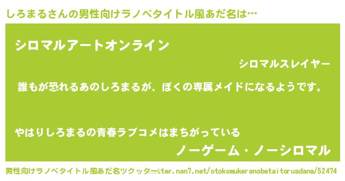 | ヘコむあだ名 | 『しろまる(苦笑)』『しろふぇ~』 |