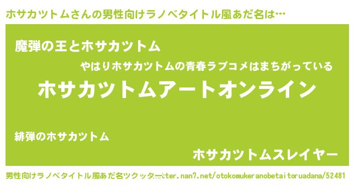 | 女子向けラノベタイトル風あだ名 | 『ホサカツトム姫と円卓の騎士』 |