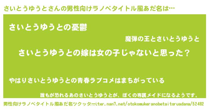 | 女子向けラノベタイトル風あだ名 | 『さいとうゆうと様がみてる』 |