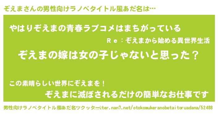 | 女子向けラノベタイトル風あだ名 | 『ぞえまの卵を拾いまして』『闇のぞえま』 |